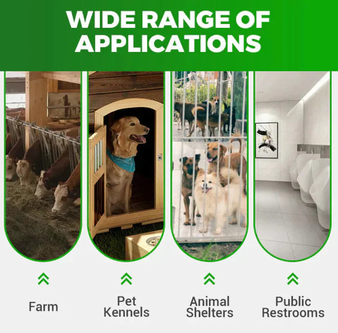 Suitable for use in farms, stables, and public spaces, this product will not stain or corrode surfaces. It is an ideal solution for restaurants, homes, and livestock areas where cleanliness and safety are essential.